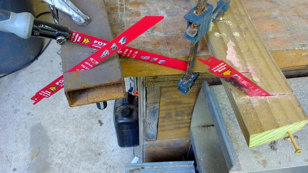 Nice container. Worth restoring with a bit of duct tape.I like to test these kinds of saw blades in a hand-powered handle and in a basic battery-powered saw. This gives me a pretty good idea of how well they perform without too easily overheating, which is murder on cutting edges.I'm not sure it shows very well in these pictures, but the kerf produced by hand cutting is wider than that produced with a power saw. I would have liked to see a bit wider kerf, which would have allowed the coating of these blades to last a bit longer than it does.The steel I cut was a medium hard framing steel, as was the deck screw, which is much harder than typical wood fasteners.I'd choose a bimetal blade with 8-tpi for wood demolition unless a lot of deck screws are involved. These blades are best suited for metal, as described.I was able to make a low angle plunge cut in wood and soft metal. For harder metals intended it be cut with this blade, a plunge cut can be started with a Dremel tool pretty easily.Recommended on price and general utility.
